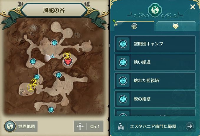 ![]() ②棘の絶壁 | 詳細: マップ南西のワープ付近 |