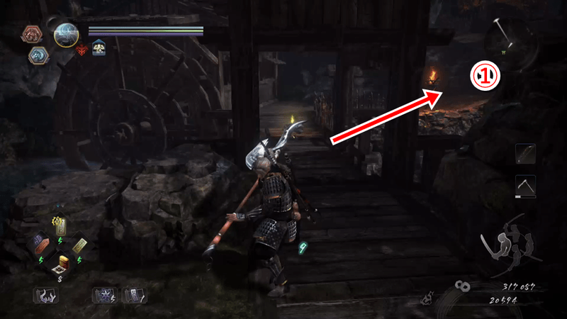 | 1 | ①にある秀吉がいる小屋の穴から落ちる |