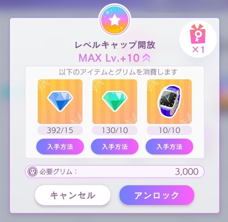 ※それでも最大レベルに達した場合はアイテムを消費することで上限突破をすることもできます。