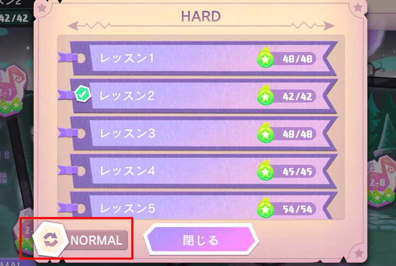 ノーマルとハードの切り替えは課題の画面左下のバナーから行います。または画面上部の課題一覧からでも変更可能です。