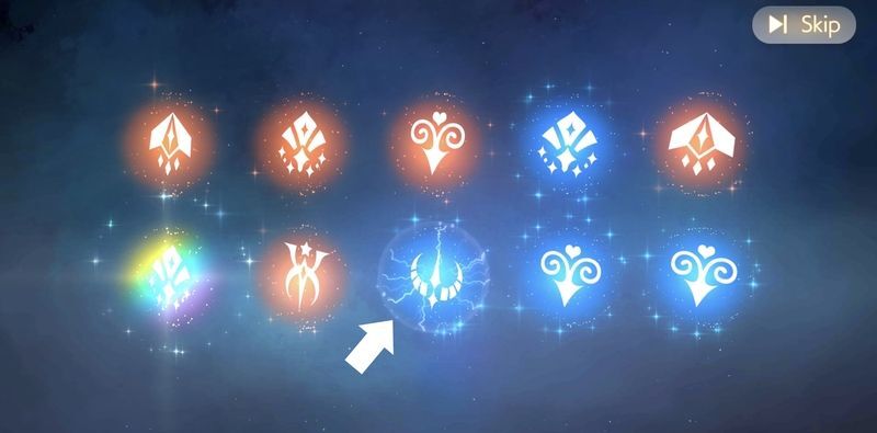 | 属性マークの 色が変化 | ![]() マークが並んだ状態の画面で 単色から虹色に変化(SR以下マークがSSR以上マークに変わる)することがある。これは単発でもある。 ※画像矢印のやつが変化する予兆。確率はそこそこ |