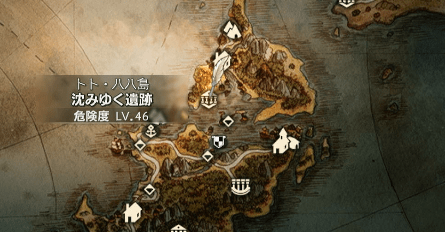 ![]() 沈みゆく遺跡 危険度:Lv64 | 錆びた弓(ボス宝箱) 神器の素材 |