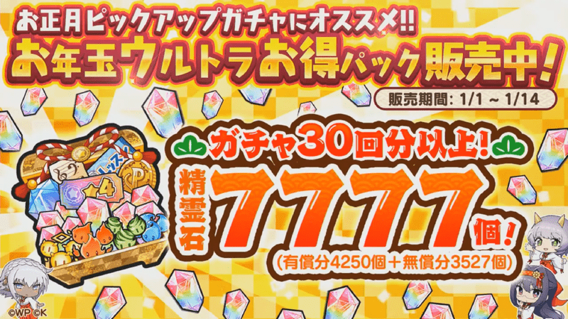 精霊石7777個に★4確定ガチャもついてきます!あとは画像から各種育成素材もついてきそうですね!