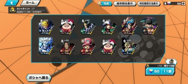 57725日まえ ID:rqzds4ok2回で閻魔ゾロ当たった