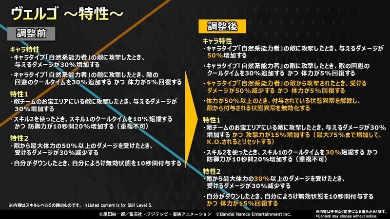 バランス調整の対象キャラ