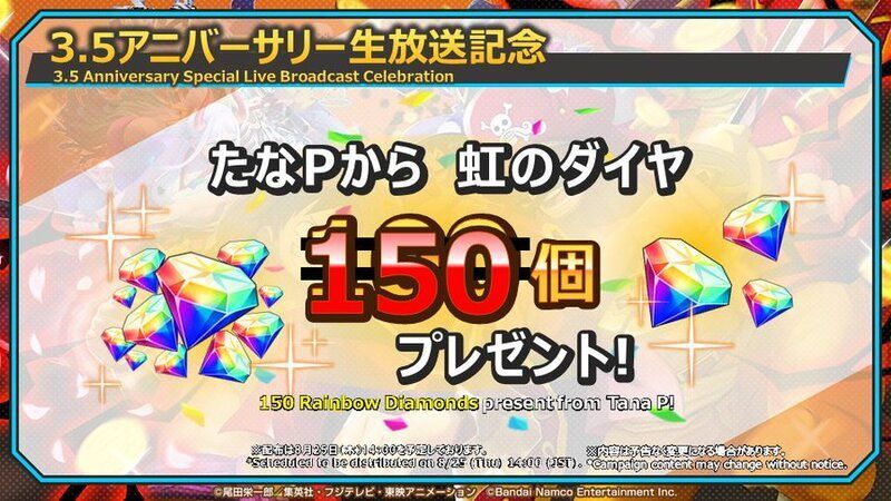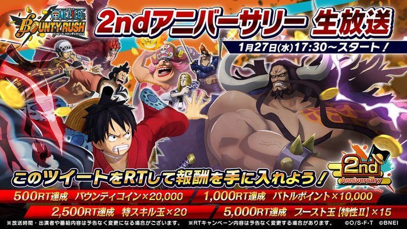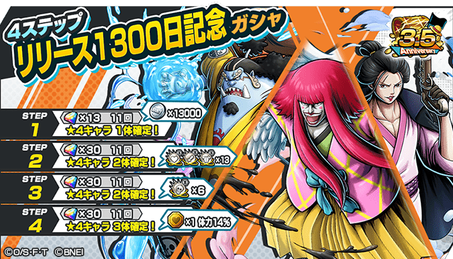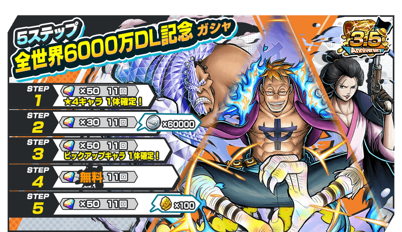 【ONE PIECE バウンティラッシュはいよいよ3.5周年に突入!!】3.5 Anniversary(3.5周年記念)の関連情報や超フェス情報を掲載!