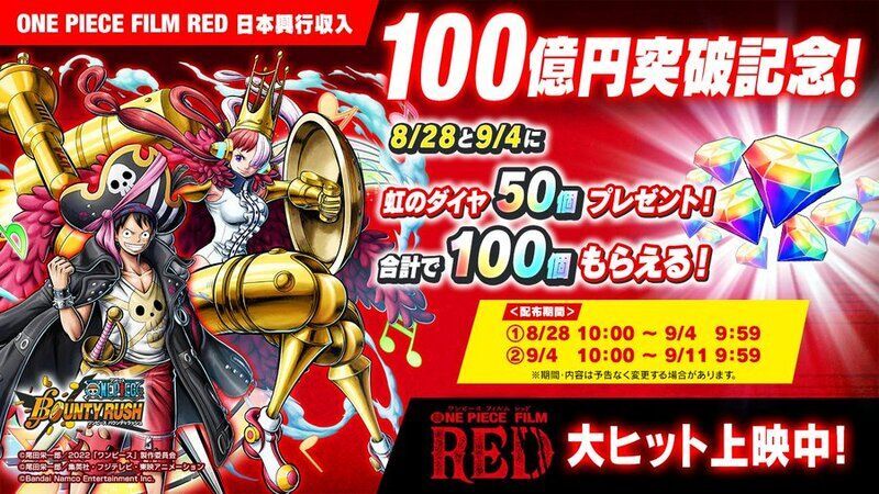 ![]() | 映画「FILM RED」とのコラボが確定しているバウンティラッシュ。RED仕様のボスバトルに期待です!! |