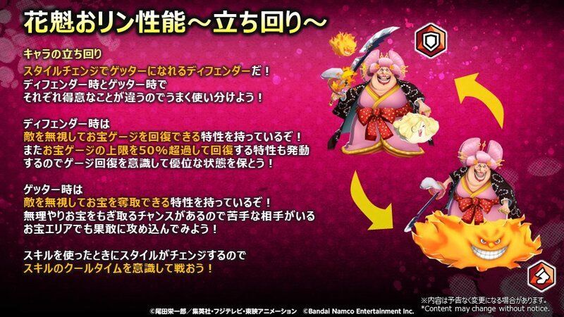 | 【四皇/2セット】 ・自チームのお宝確保数が敵チームより少ないとき▶与ダメ7%増加 | ||