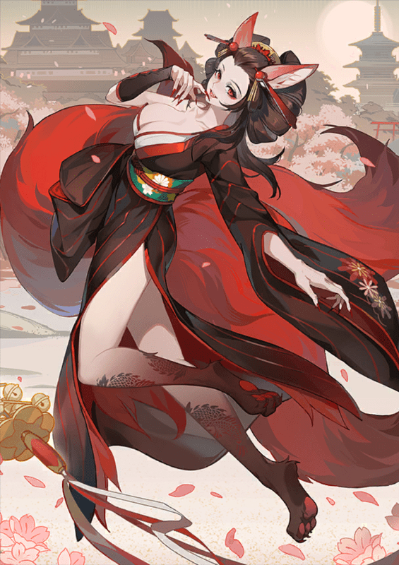 | 妖尾赤狐 | 入場時と味方ターン開始時に、三尾の狐が1レベルあるごとに、ランダムな相手キャラ1体に1ダメージを与える。 | 1 | 形態 | SR | |