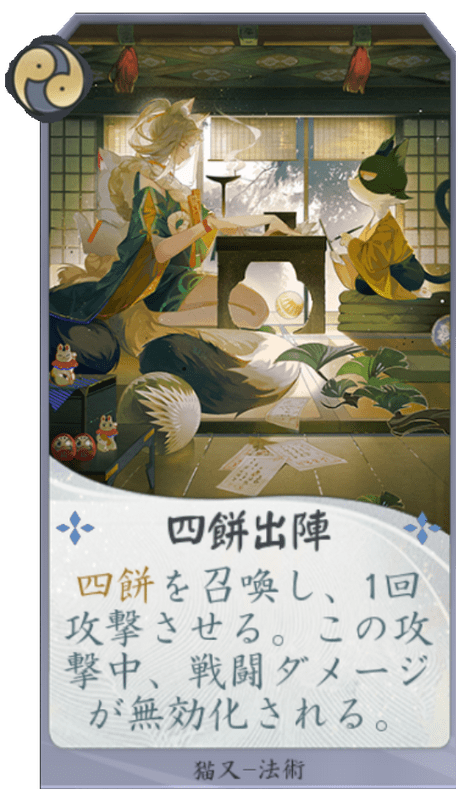 四餅に攻撃食材を付与できれば、以降攻撃力6点を安定して供給できるようになる。体力6の式神も多いため、相手は盤面に立てることも難しくなるだろう。