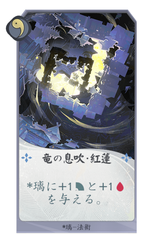1ターンに1度、螭璃がカードを捨てる時、螭璃が捨てるカードの対応する系統の「竜の息吹」を1枚溜める。