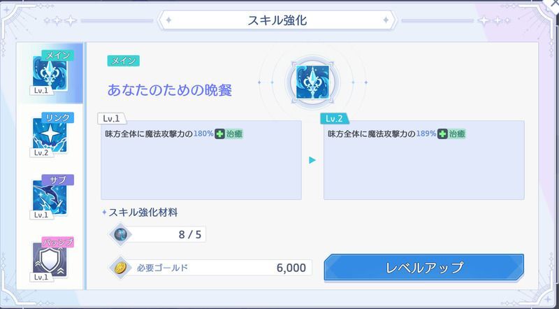 | スキル強化 | スキルの火力や回復量などの効果を強化 | |