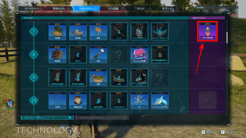 タマゴを孵化するには古代テクノロジー7で取得できる「タマゴ孵化装置」が必要となります。