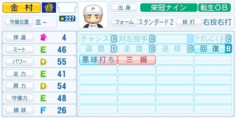 パワプロ2024(栄冠ナイン)の金村義明選手の能力をまとめています。能力以外にも年代、都道府県などの情報を掲載しています。
