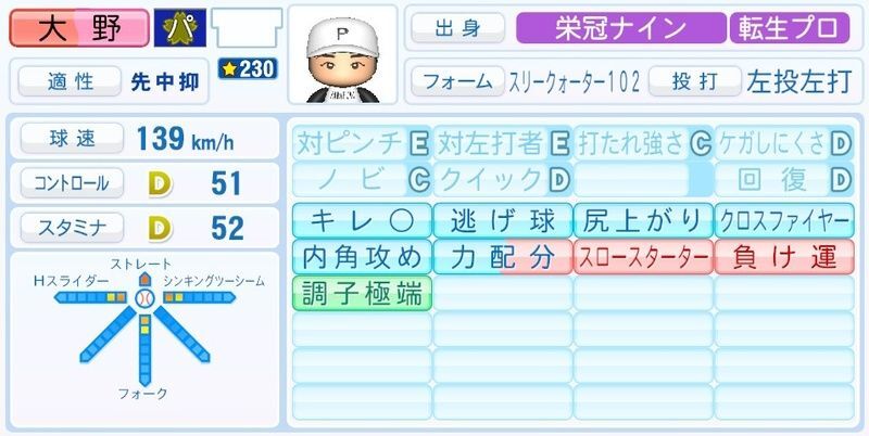 【栄冠ナイン2024】大野雄大の転生能力・年代・都道府県【パワプロ2024】