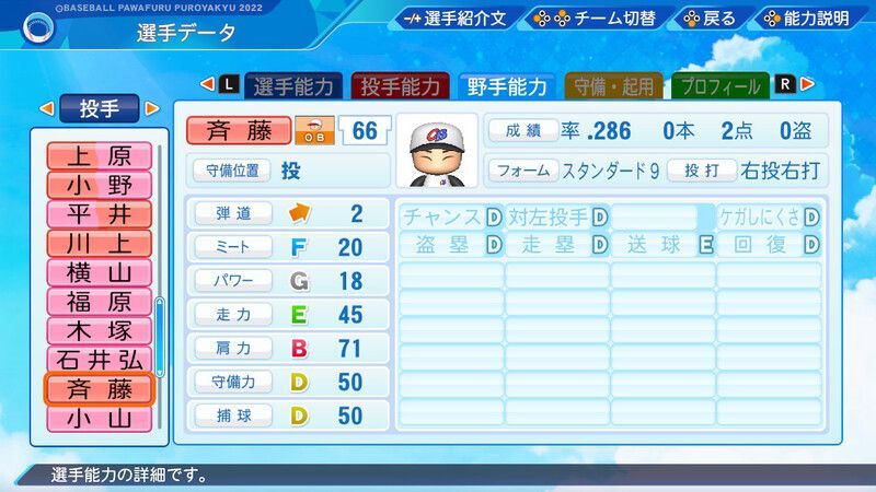 【パワプロ2022】斉藤 和巳の能力や特徴