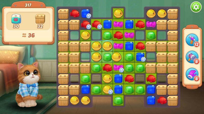 仕切り壁で囲まれたギフト箱があり、ブースターの使い道として、直接石像を壊すか、一旦仕切り壁を壊してギフト箱からもっと多くのブースターを得るかの二択になる。