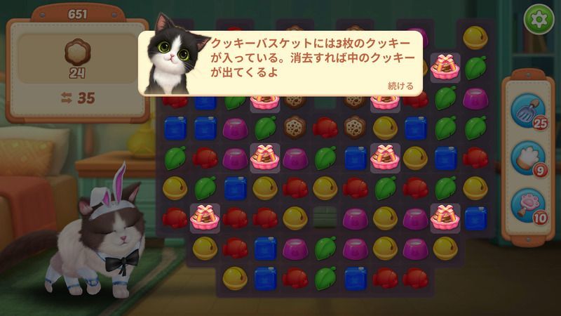 実際にプレイした方が早いが、一応書くと、クッキーバスケットからはクッキーが拡散する。