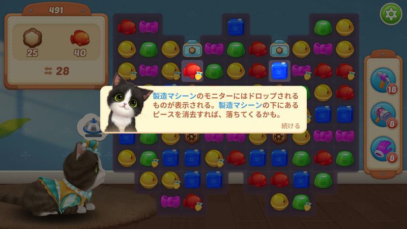 このステージでは、クッキーを発生させる。ステージノルマは赤ブロックと、発生するクッキー。