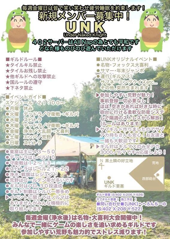 ○NAPギルドなので、エンパ以外はNoシールド。○ギルドイベントはリアル優先。飲み会優先(笑)