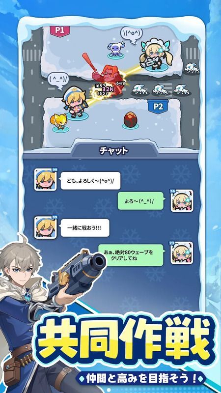 戦力を共有して助け合い、ゲーム内チャットでコミュニケーションを取りながら戦略的バトルを楽しもう。