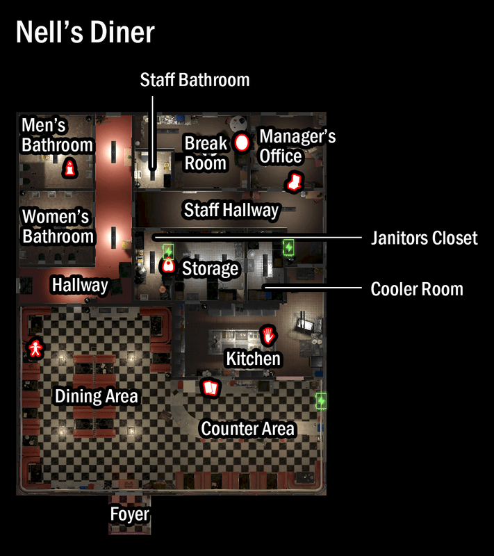 発生する場所は本当に「Hallway」じゃなく、「Staff Hallway」のキッチン付近のごみ箱です(いつものことながら、パッチノートに書かれた情報は正確性に欠けますね)