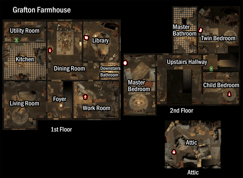 - 1階奥の区域以外が選ばれた場合、ハント時に出入り口のドアに加え、各区域の左右の廊下に続くドアもロックされ、ハント終了までプレイヤーはそこを行き来することができなくなります。なおゴーストは通り抜けることが可能なので注意してください。