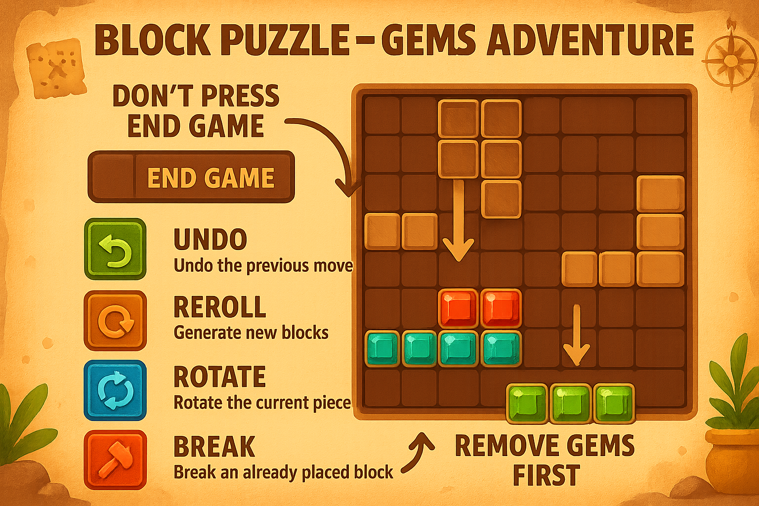 Block Puzzle - Gems Adventureでアメフリポイントを効率的に獲得するには、CLASSICモードでの継続プレイが重要です。手詰まり時にEnd Gameを押さず、アイテムを活用して1回のプレイで目標スコアを達成しましょう。