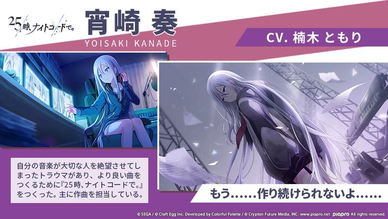 自分の音楽が大切な人を絶望させてしまったトラウマを持つ。その経験から、「誰かを幸せにする曲をつくり続けなければならない」と考えるようになり、『25時、ナイトコードで。』を結成。主に作曲を担当している。