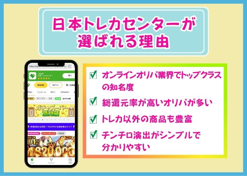 日本トレカセンターはユーザー数も多く、知名度抜群の大手オンラインオリパサイトです。