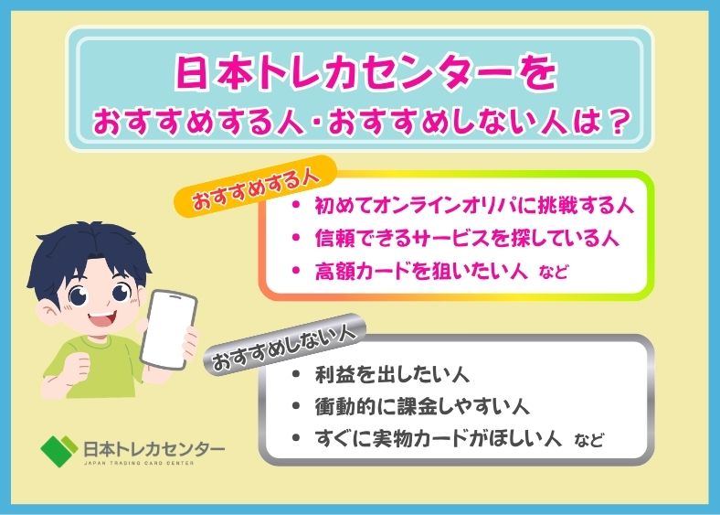そこでこの章では、日本トレカセンターをおすすめする人・おすすめしない人をそれぞれまとめました。