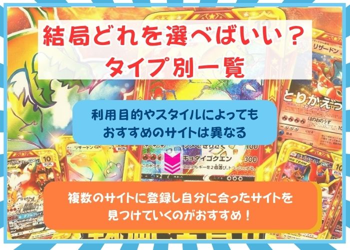オンラインオリパは、利用目的やスタイルによってもおすすめのサイトは異なります。