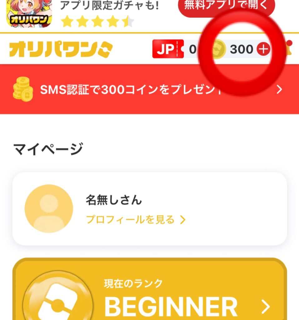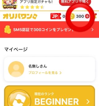 SMS認証を行うことで300コインを獲得できるので、実質無料でオリパを引くことはできますが、基本は有料サービスであることを理解しておきましょう。