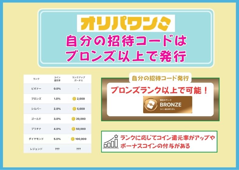 オリパワンの自分の招待コードはブロンズ以上で発行