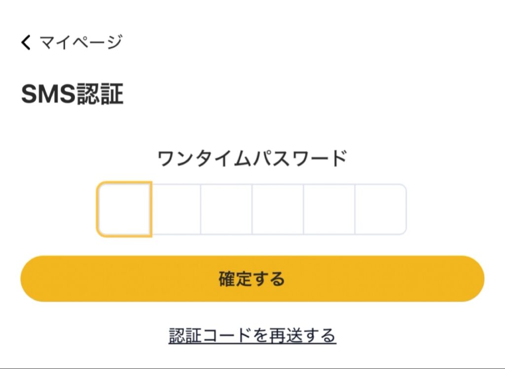 届いたワンタイムパスワードを入力し送信すると、SMS認証が完了します。