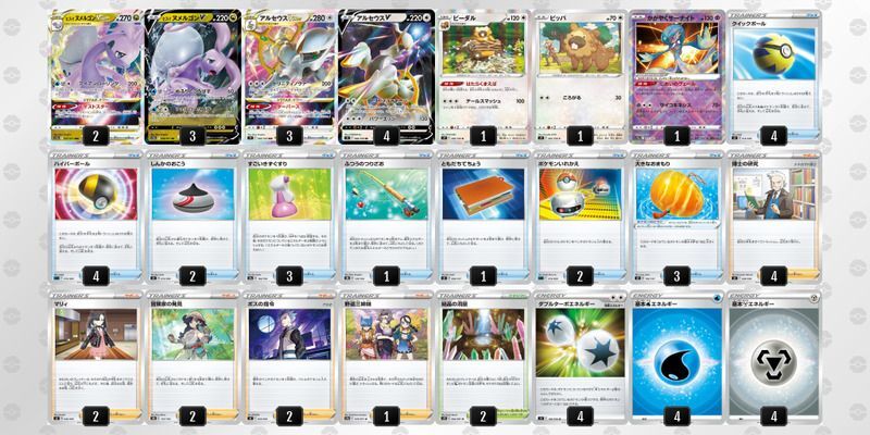 アルセウス軸はトリニティノヴァ、裏工作のみず軸であればメロン、ドータクンと組んだ鋼軸であればザシアンの特性などデッキによってエネ加速の仕方に特徴が違います。