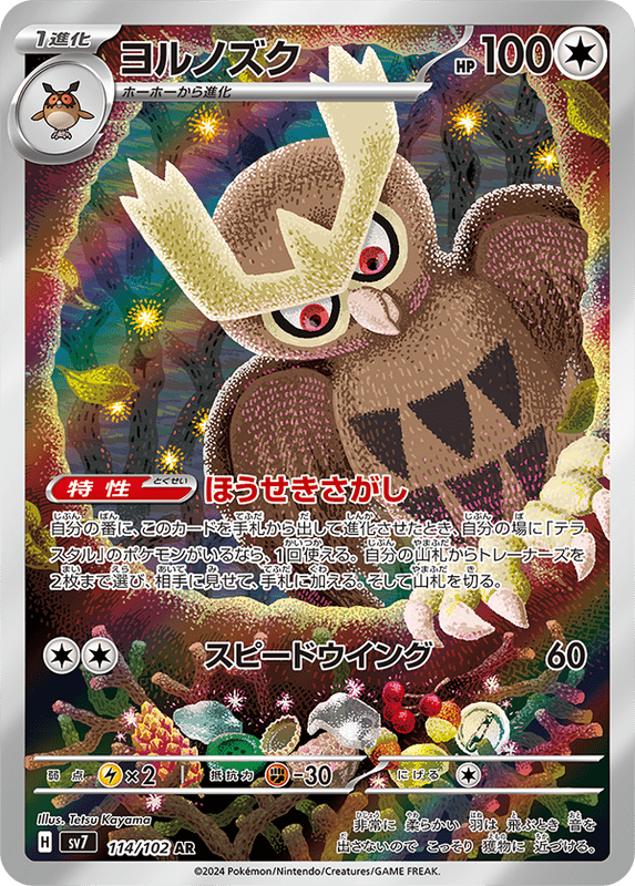 テラスタルポケモンがいればベンチに8体置けるようになる「ゼロの大空洞」や進化時にエネルギーを2枚もっってこれるヨルノズクなどテラスタル強化のカードが追加されます。