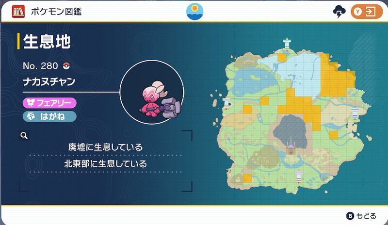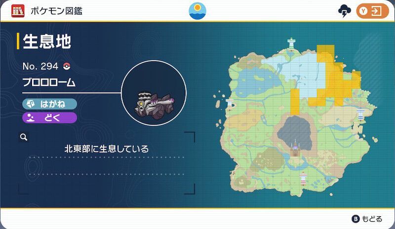 ![]() ブロロローム | ナッパ山と北1番エリアの境目の崖 ブロロンがLv.40で進化 ┗ブロロン→東3番エリア周辺 |