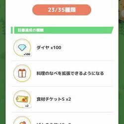 | 料理の食材数 | 寝顔図鑑の目標数 | 必要かけら数 |