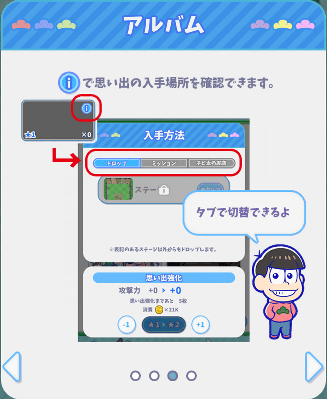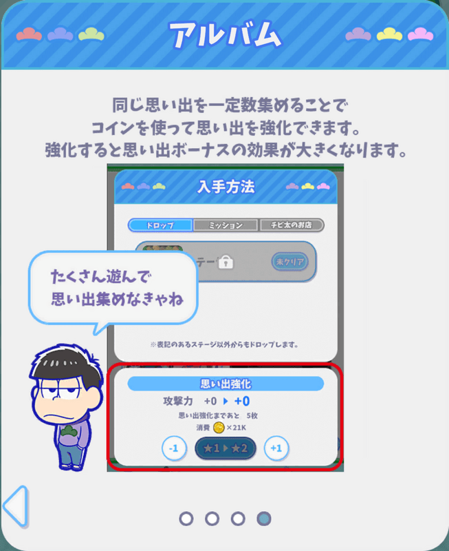 ぽこ松(おそ松さんの主役争奪ぽこボール)のアルバムや思い出ボーナスなどについてまとめています。ぽこ松の攻略にお役立てください。