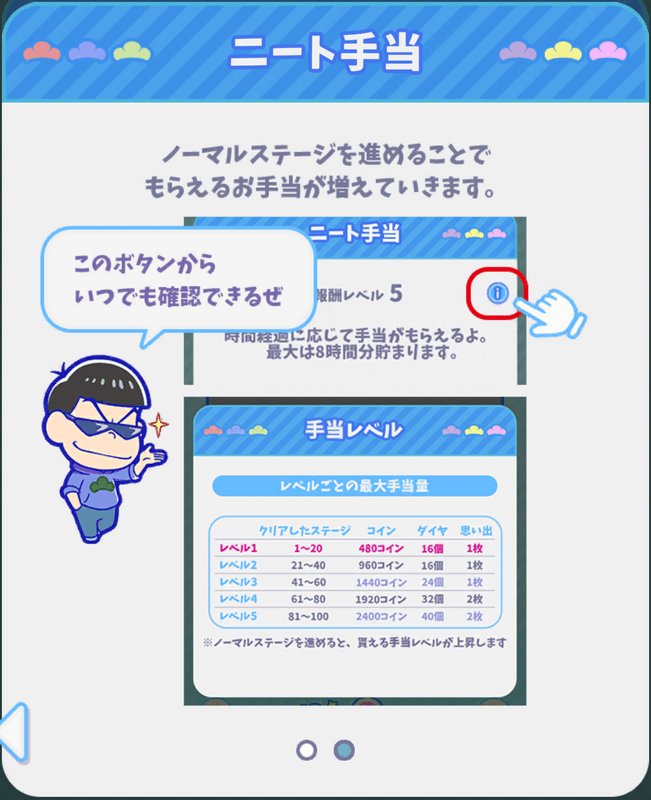 ぽこ松(おそ松さんの主役争奪ぽこボール)のニート手当についてまとめています。ぽこ松の攻略にお役立てください。