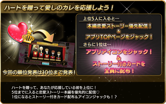 5位までに入ると恋愛イベント本編を優先に配信♡