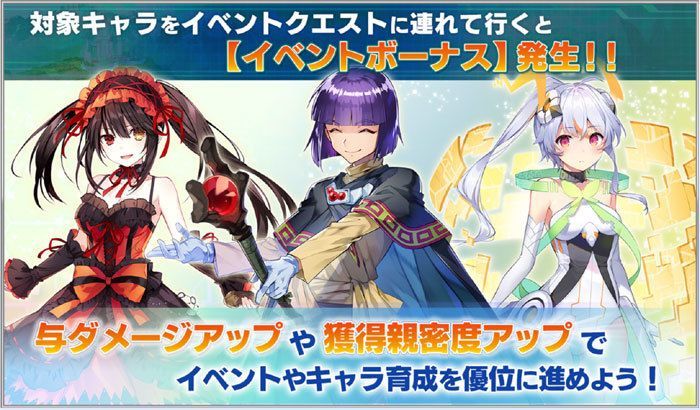 | 期間限定イベント「混成世界探訪クエスト」に対象のキャラを編成して挑戦するとイベントボーナスが発生します。 |