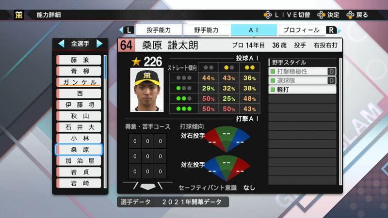 プロスピ2021(プロ野球スピリッツ2021)の桑原 謙太朗の実在選手データです。能力、基本ステータス、特殊能力などの選手データをまとめています。