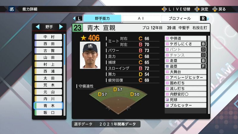 プロスピ2021(プロ野球スピリッツ2021)の青木 宣親の実在選手データです。能力、基本ステータス、特殊能力などの選手データをまとめています。