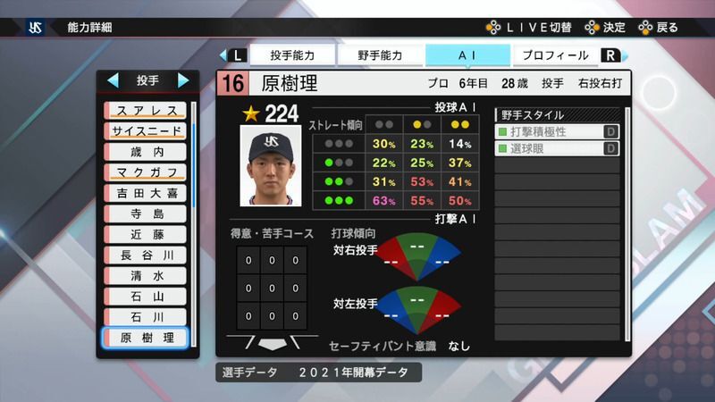プロスピ2021(プロ野球スピリッツ2021)の原 樹理の実在選手データです。能力、基本ステータス、特殊能力などの選手データをまとめています。
