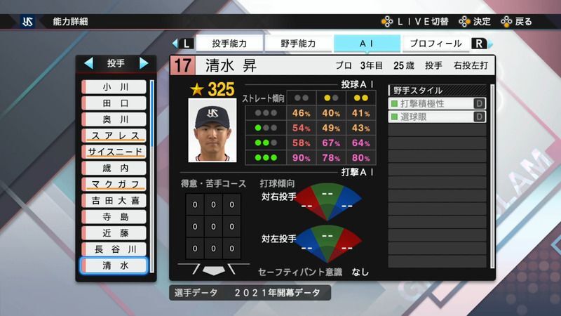 プロスピ2021 清水 昇の選手能力