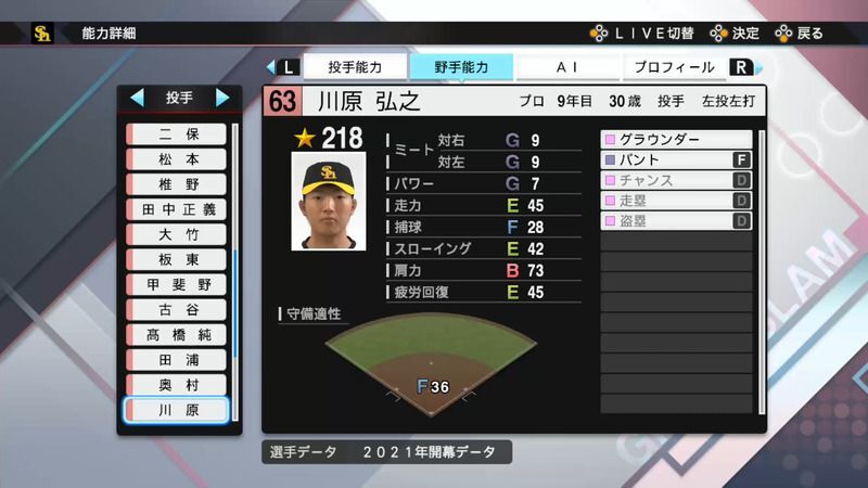 プロスピ2021(プロ野球スピリッツ2021)の川原 弘之の実在選手データです。能力、基本ステータス、特殊能力などの選手データをまとめています。