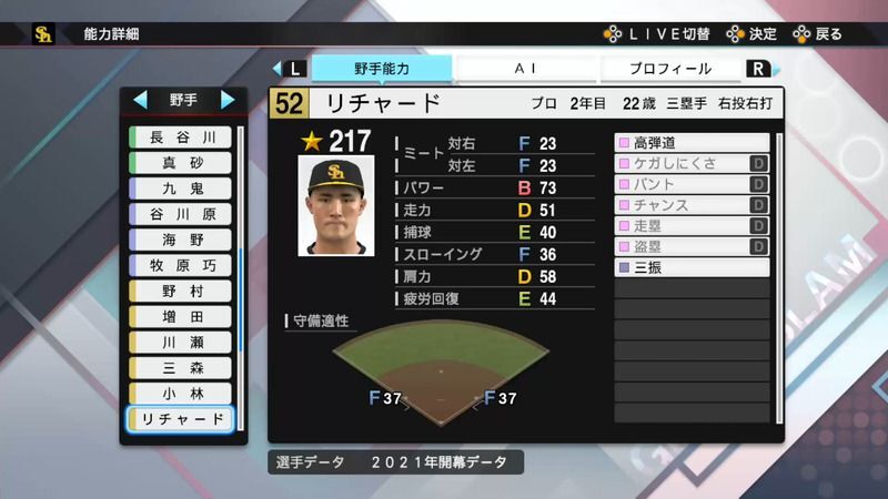 プロスピ2021 リチャードの選手能力