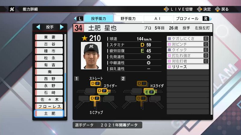 プロスピ2021(プロ野球スピリッツ2021)の土肥 星也の実在選手データです。能力、基本ステータス、特殊能力などの選手データをまとめています。